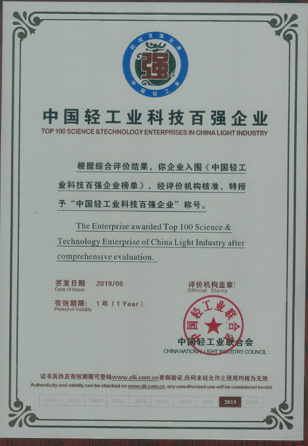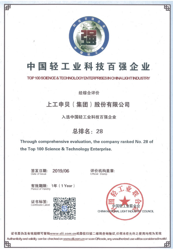 Top 100 Chinese Light Industry Technology Enterprises (ranked 28th)