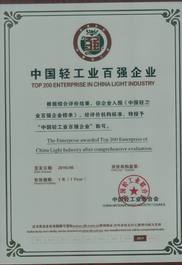 Top 100 Chinese Light Industry Enterprises (ranked 163rd)
