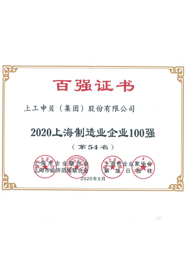 Top 100 Manufacturing Enterprises in Shanghai (54th Place)