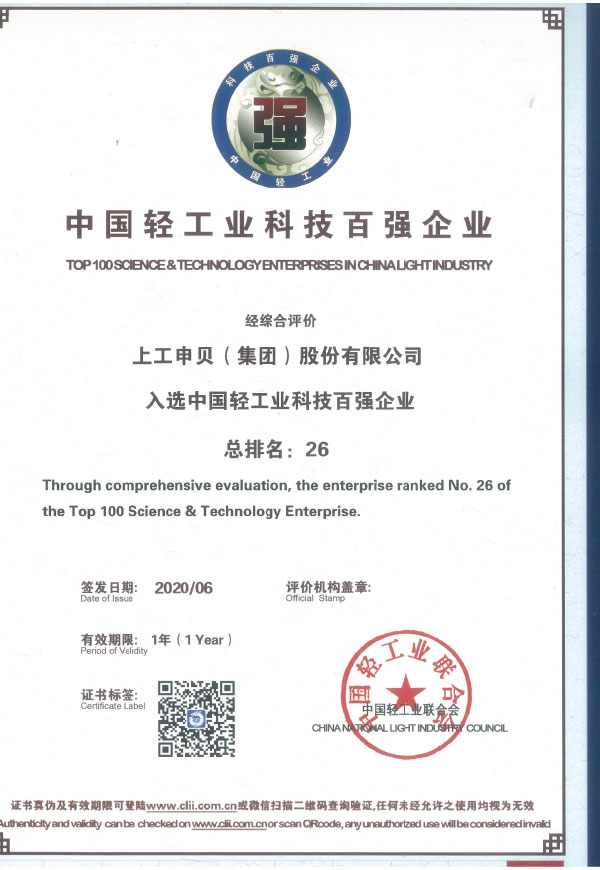 Shanggong Shenbei (Group) Co., Ltd. was selected as one of the top 100 Chinese light industry technology enterprises (ranked 26th)